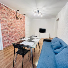 В квартире есть все необходимое для комфортного проживания. Техника, такая как телевизор, микроволновая печь, холодильник, плита, стиральная машина, будет в Вашем распоряжении. Вы сможете наслаждаться прекрасным интерьером и уютом этого места. Комфортные спальные места со свежим постельным бельем.