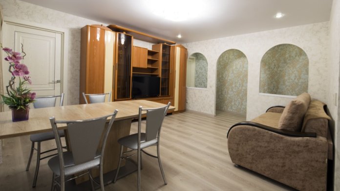 - на кухне посуда и столовые принадлежности все для комфортного проживания.