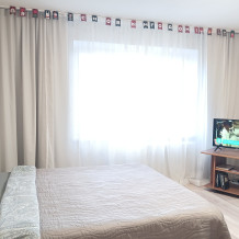 В квартире есть две изолированные спальни, удобный балкон для курения, раздельный санузел и лифт для Вашего комфорта. В квартире предусмотрено всё необходимое для вашего отдыха: два двухспальных раскладных дивана для 4 гостей, постельное белье, полотенца, вай-фай, телевизор, утюг, гладильная доска, кухонная плита, микроволновка, холодильник и стиральная машинка.