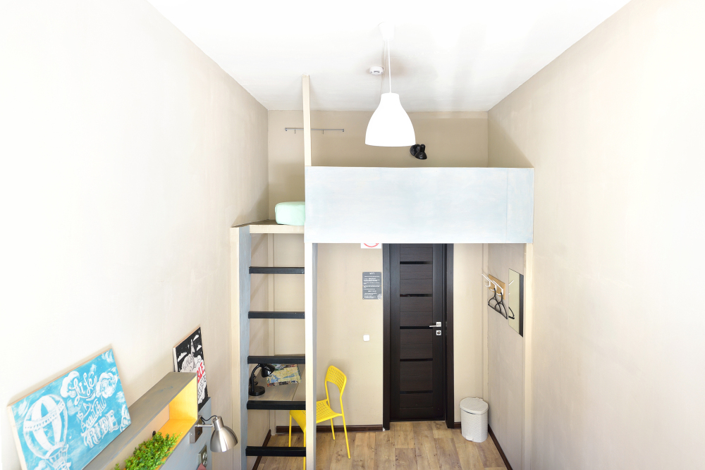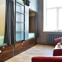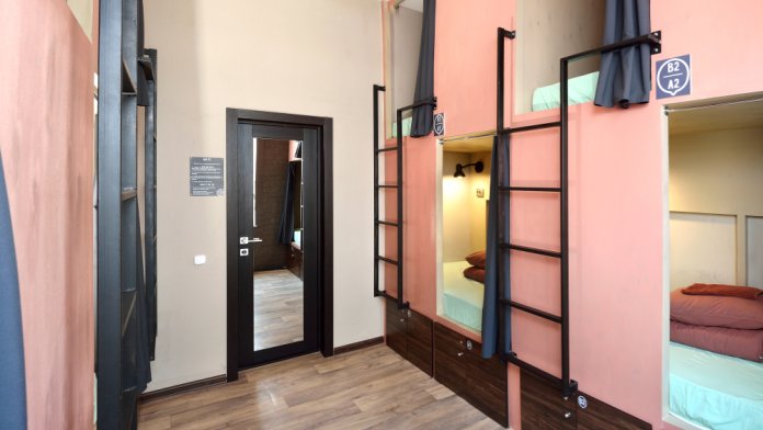 Для размещения гостям предлагают номера категории Семейный и общие номера для мужчин и женщин на 4, 6 и 8 человек. Каждое спальное место оборудовано светильником, двойной розеткой, полочкой для гаджетов, вешалкой для одежды. Душевые и туалетные комнаты — общие на этаже.