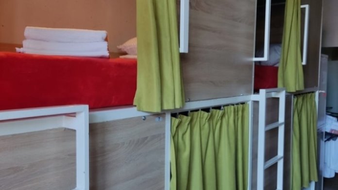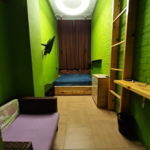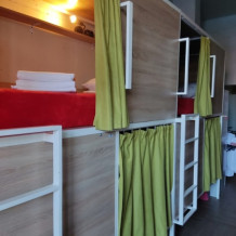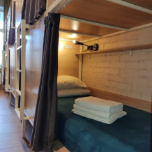 15-тиместный общий номер капсульного типа. В данном номере предусмотрено проживание мужского и женского пола. Для Вашего удобства в каждой капсуле расположен ортопедический матрас, а также полочка, двойная розетка и отдельный светильник. Капсула закрывается плотной, светонепроницаемой шторой. В этой комнате есть место для переодевания, так же отдельный вход, комната подходит для проживания больших групп. На дверях и окнах есть железные жалюзи. Кровати расположены так, что под ними может уместиться габаритный багаж.