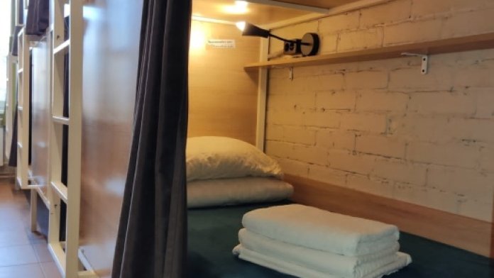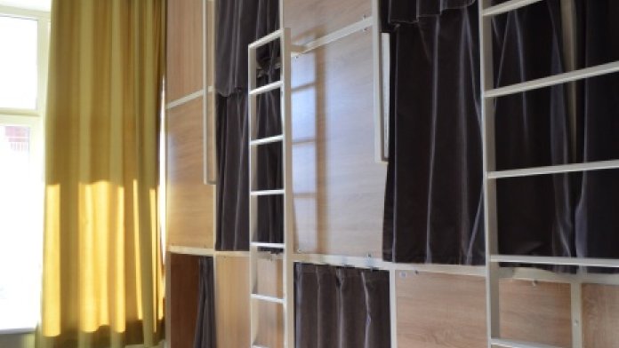 Номера выполнены в светлых тонах, оснащены кроватями капсульного типа, каждая кровать закрывается шторкой, которая создает индивидуальное пространство.