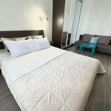 - Двуспaльнaя кровaть с удoбным матpaсом + 2 двуcпaльных дивана.