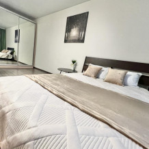 Светлая, большая, новая квартира. У нас чистота и порядок, регулярная уборка горничной, есть всё для комфортного длительного проживания: свежий ремонт, всегда чистое пастельное бельё и полотенца, новая мебель вся необходимая посуда и кухонные принадлежности.