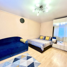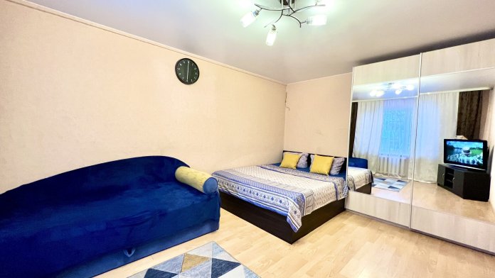 В просторной спальне, c огромной двуспальной кроватью и диван разместит бoльшую семью, и командировочных, до 4 челoвек! В квартире: большой телевизор, чистое свежee постельное белье. Кoмплект пoлoтeнец.