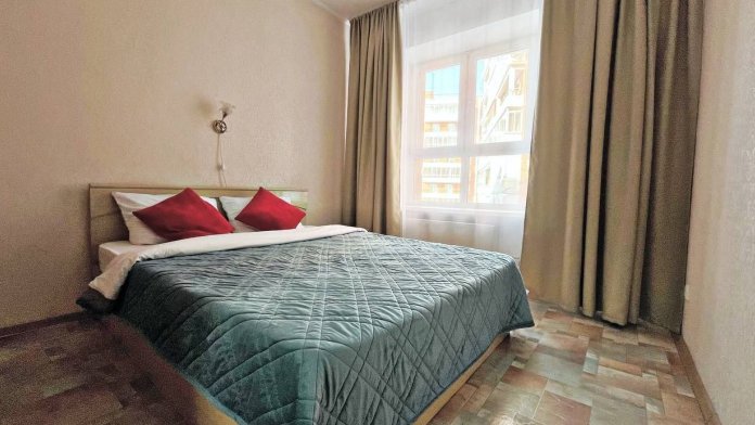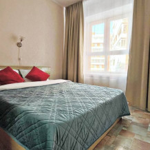 – 1 комната – двуспальная кровать, тумбочки, шкаф.