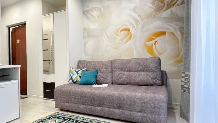 – Удобный двуспальный диван, постельное белье, подушки, одеяло и просторный балкон.