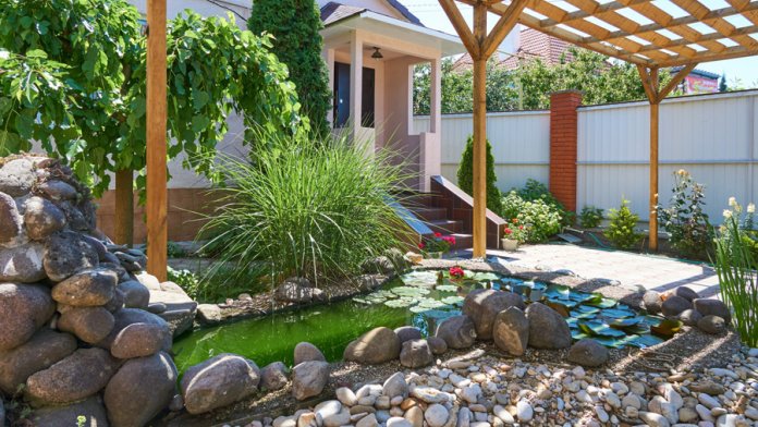 Здесь растут можжевельники, ёлки и ёлочки, благоухают розы различных оттенков, цветёт герань и величественная гортензия. В пруду цветут нежные лилии, а под их листьями притаились золотые рыбки. В саду зреют сливы, инжир, персики....