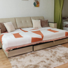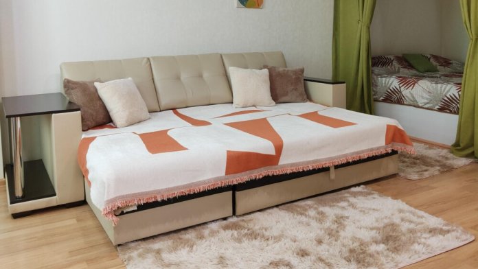 Квартира оснащена всем необходимым для комфортного отдыха: большой комфортной двуспальной кроватью, удобным раскладным диваном, постельным бельем, телевизором, Wi-Fi, сплит-системой, стиральной машиной, утюгом, гладильной доской, сушилкой, феном. Оборудованная удобная кухня: СВЧ печь, холодильник, газовая плита, электрический чайник, необходимые столовые приборы и посуда. В ванной комнате гигиенические принадлежности: набор полотенец для каждого гостя, одноразовые зубные щетки, шампунь, гель, мыло.