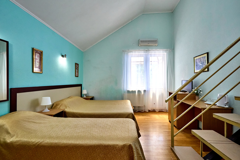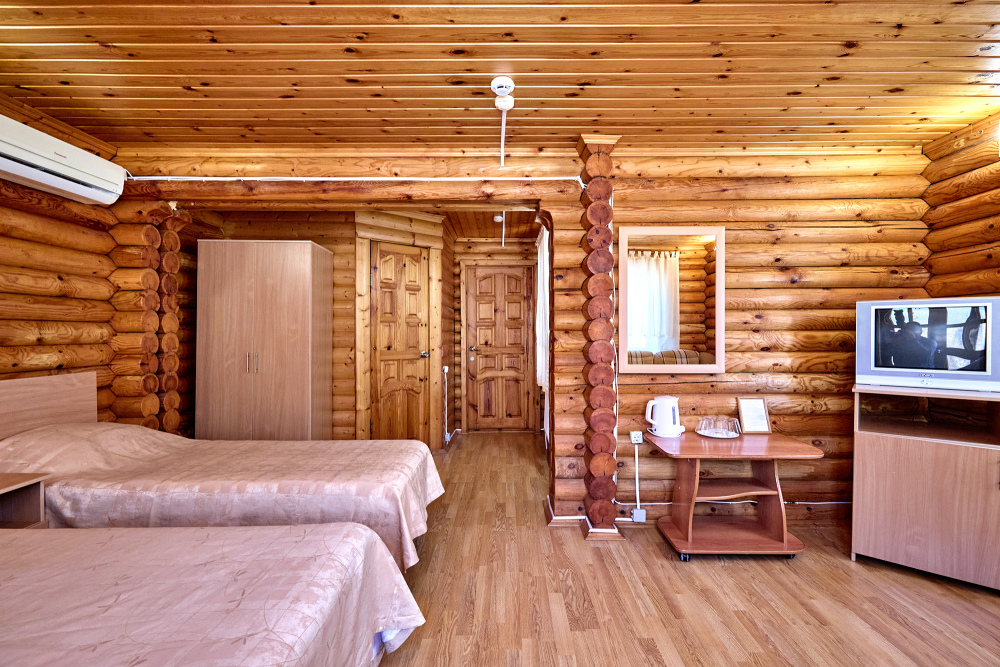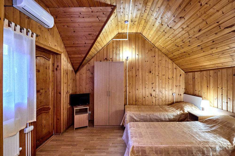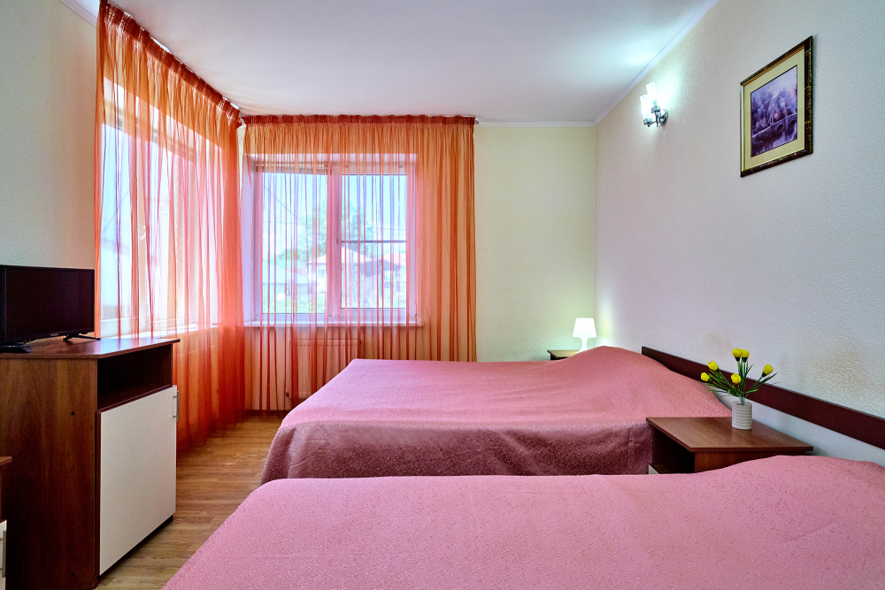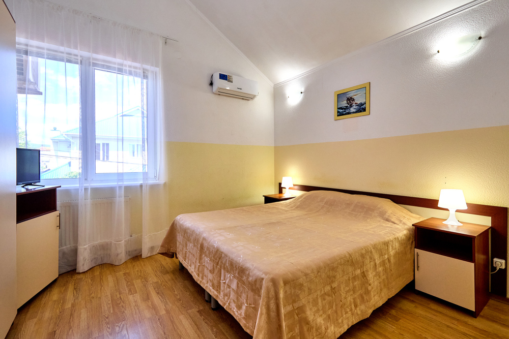 Номера оборудованы всем необходимым для комфортного отдыха. В каждом номере: сплит-система, телевизор, холодильник, электрочайник, фен, полотенца, туалетные принадлежности, полотенца, постельное белье.