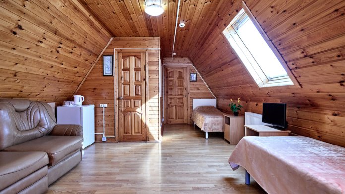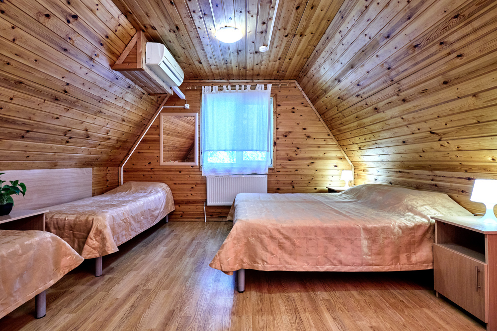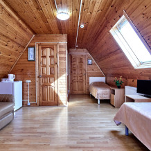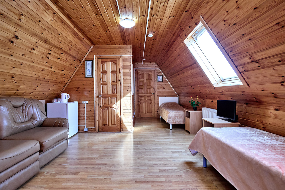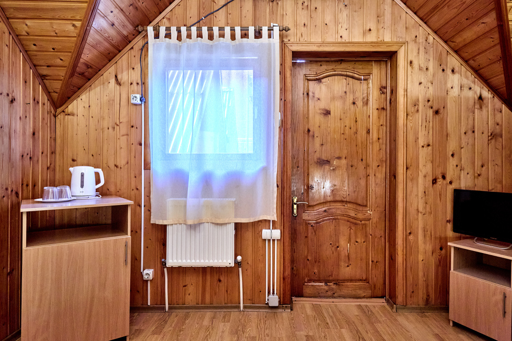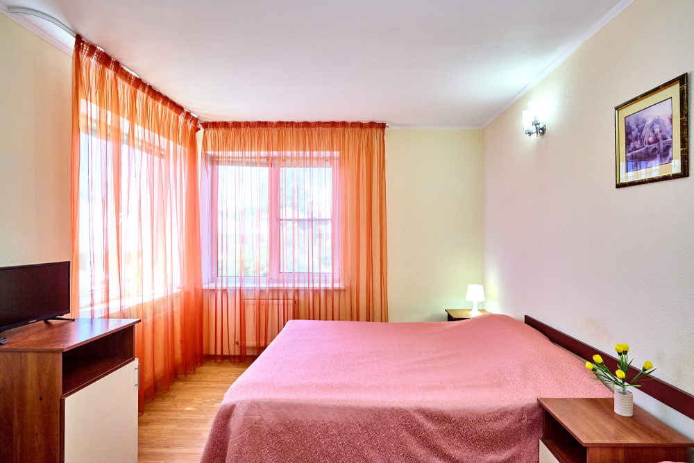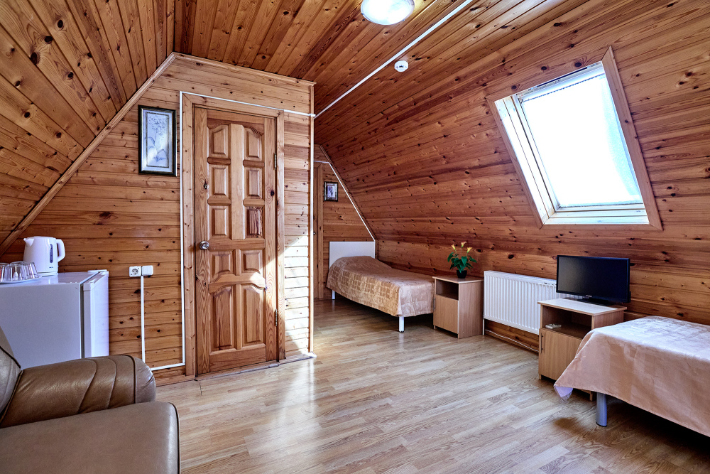 Номера оборудованы всем необходимым для комфортного отдыха. В каждом номере: сплит-система, телевизор, холодильник, электрочайник, фен, полотенца, туалетные принадлежности, полотенца, постельное белье.
