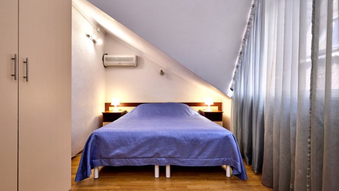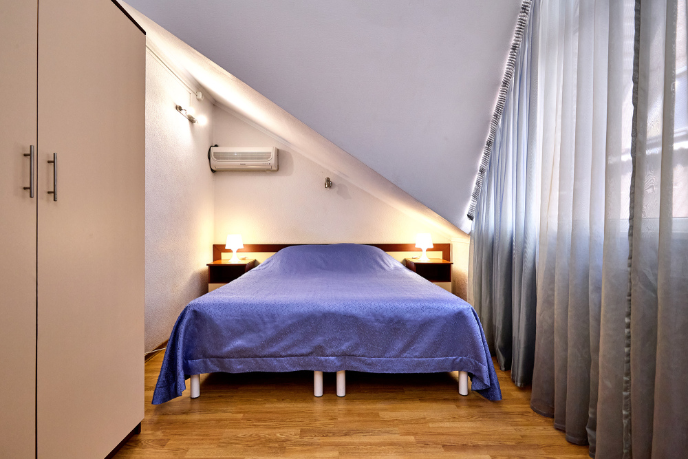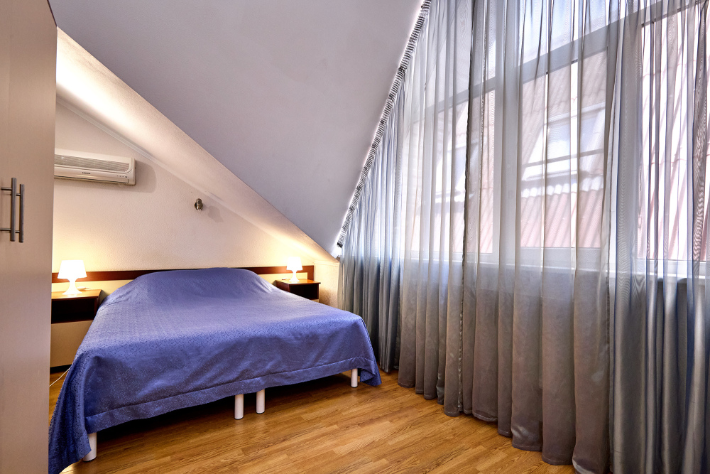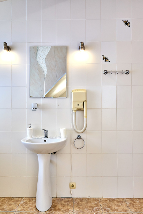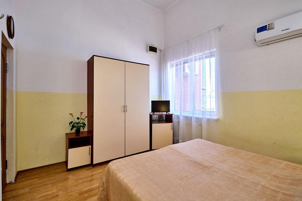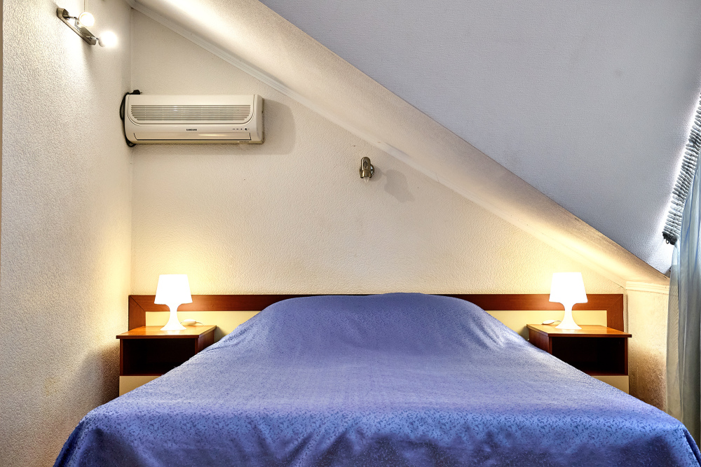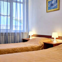 2-местный номер Эконом-класса без балкона с 1 двуспальной кроватью или 2 отдельными кроватями. В номере: сплит-система, холодильник, ТВ на 20 каналов, прикроватные тумбы и светильники, шкаф для одежды, полотенца, туалетные принадлежности, фен, электрочайник, набор посуды. Санузел и душевая кабина на этаже.