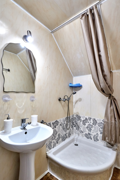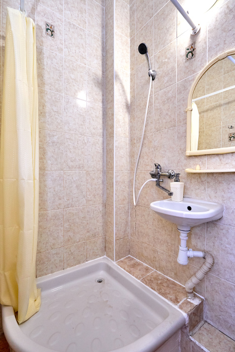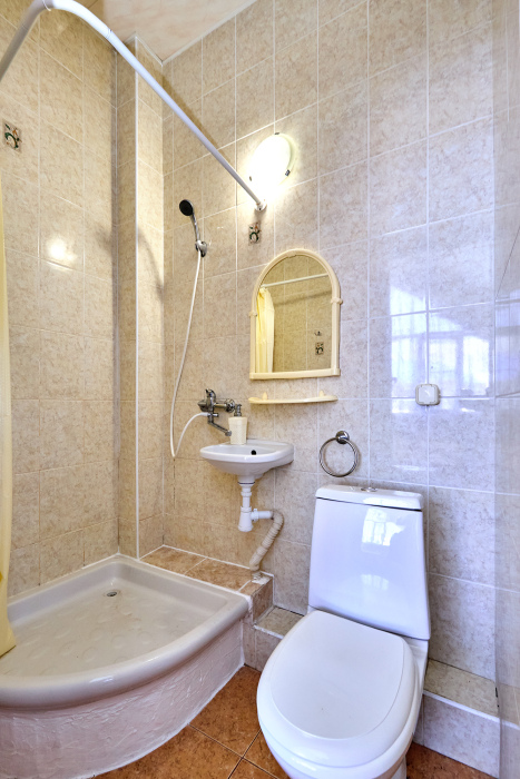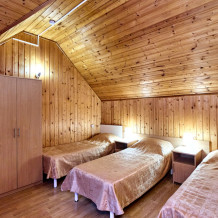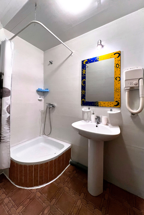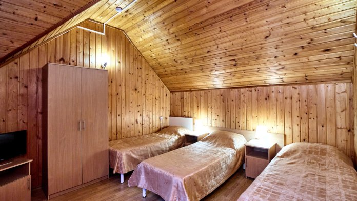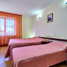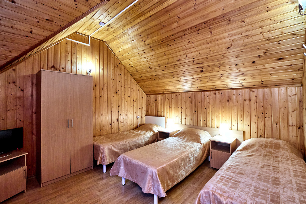 3-местный номер Эконом-класса без балкона с 1 двуспальной кроватью и одной односпальной, либо 3 односпальные кровати. В номере: сплит-система, холодильник, ТВ на 20 каналов, прикроватные тумбы и светильники, шкаф для одежды, полотенца, туалетные принадлежности, фен, электрочайник, набор посуды. Санузел и душевая кабина на этаже.