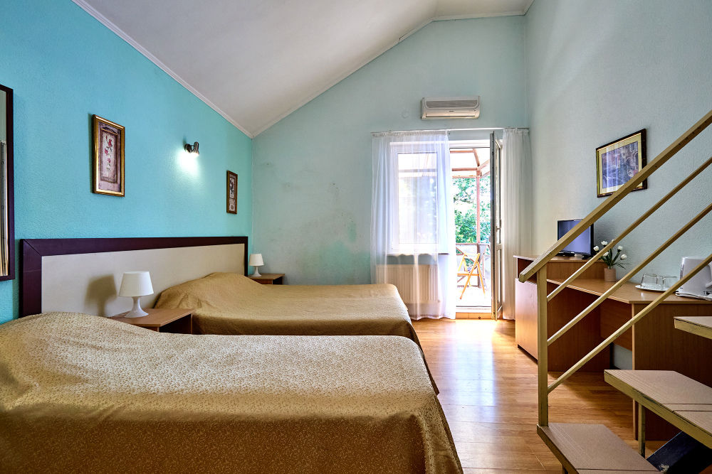 Стандартный 3-местный номер с балконом с 1 двуспальной кроватью и одной односпальной кроватью, либо 3 отдельными кроватями. В номере: сплит-система, холодильник, ТВ на 20 каналов, прикроватные тумбы и светильники, шкаф для одежды, полотенца, туалетные принадлежности, фен, электрочайник, набор посуды, санузел, ванная комната, балкон.