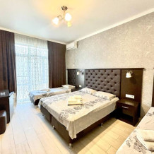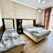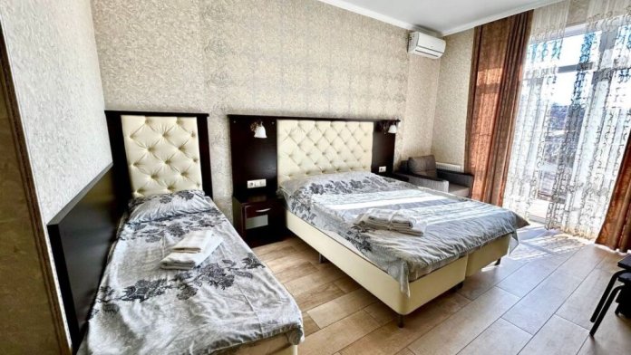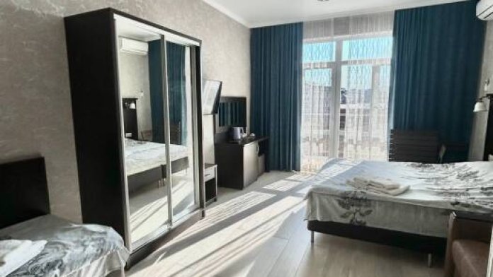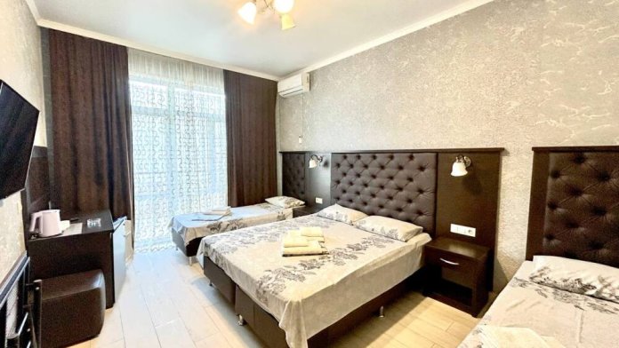 Вас ждут две комфортабельные кровати, а для гостей, путешествующих с детьми или компанией друзей, предоставляется удобное кресло-кровать. В номере есть все необходимое: холодильник, телевизор, чайник, бесплатный Wi-Fi и набор посуды. А просторный балкон с захватывающим видом на море и горы станет идеальным местом для утреннего кофе или романтического вечера.
