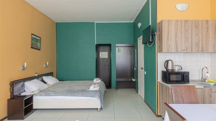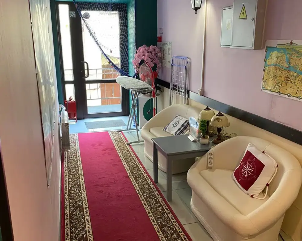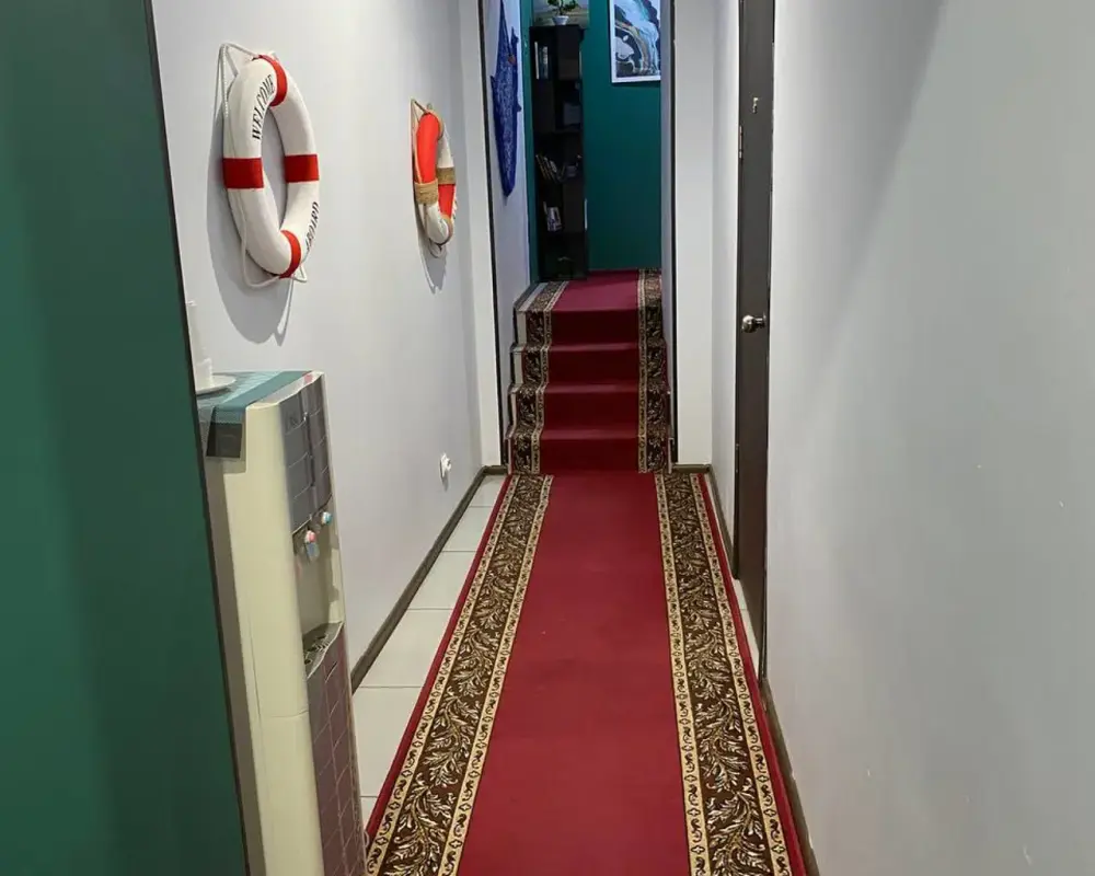 - Чайная станция, телевизор, вентилятор, мини холодильник, стол и стулья, прикроватные тумбы и зеркало в каждом номере.