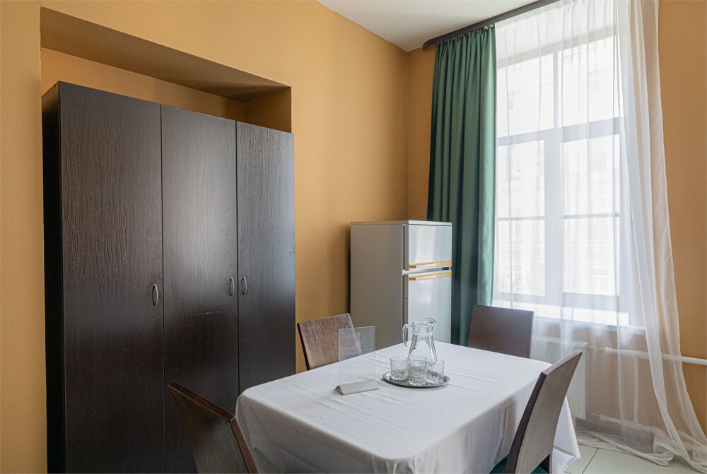- В общей зоне есть всё необходимое для самостоятельного приготовления пищи: набор посуды, кулер, холодильник, микроволновая печь, электрический чайник.