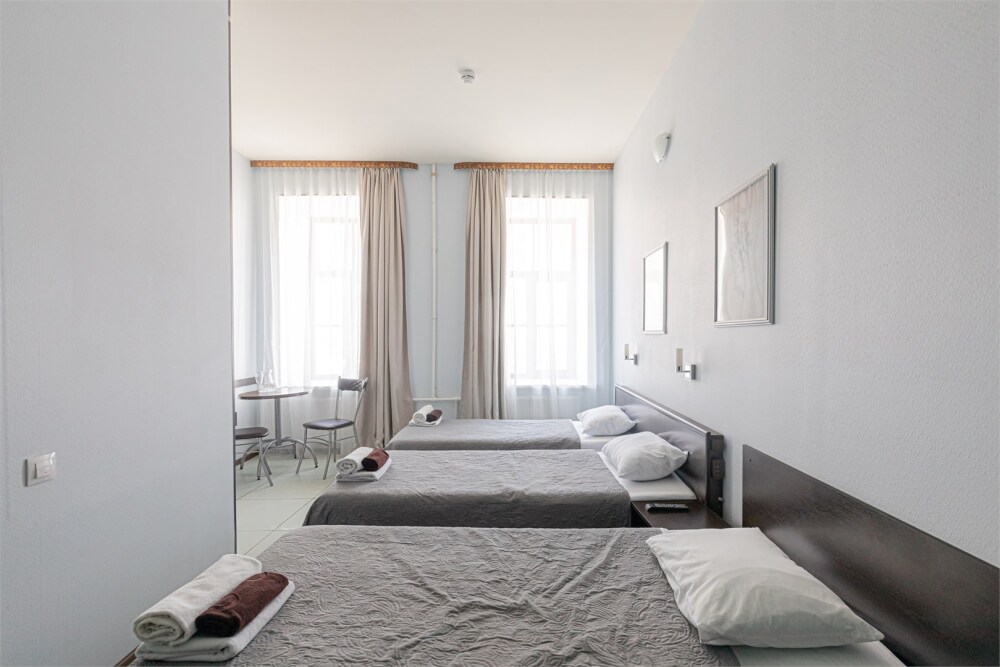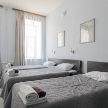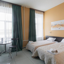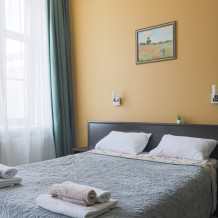 Но если совсем не хочется никуда идти, то не забывайте, что сам отель расположен в историческом здании, которое было построено в 1867-1868 гг. арх. Р. Е. Бергманом для купца И. М. Крюкова, справа от Вас будет набережная Невы, с видом на Петровский стадион и Тучков мост, а слева - Кадетская и 1-ая линия Васильевского острова, где каждое здание - памятник архитектуры.