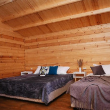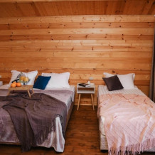 Для наших гостей мы предлагаем коттеджные домики, полностью оборудованные для комфортного проживания. В каждом домике есть чайник, холодильник, смарт ТВ, WI-FI, также имеется кондиционер и ванная комната. У каждого домика есть своя веранда на которой расположены стол и стулья, для отдыха на свежем отдыхе.