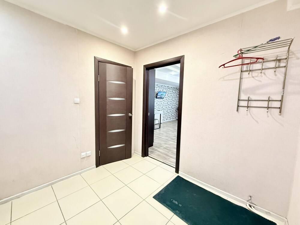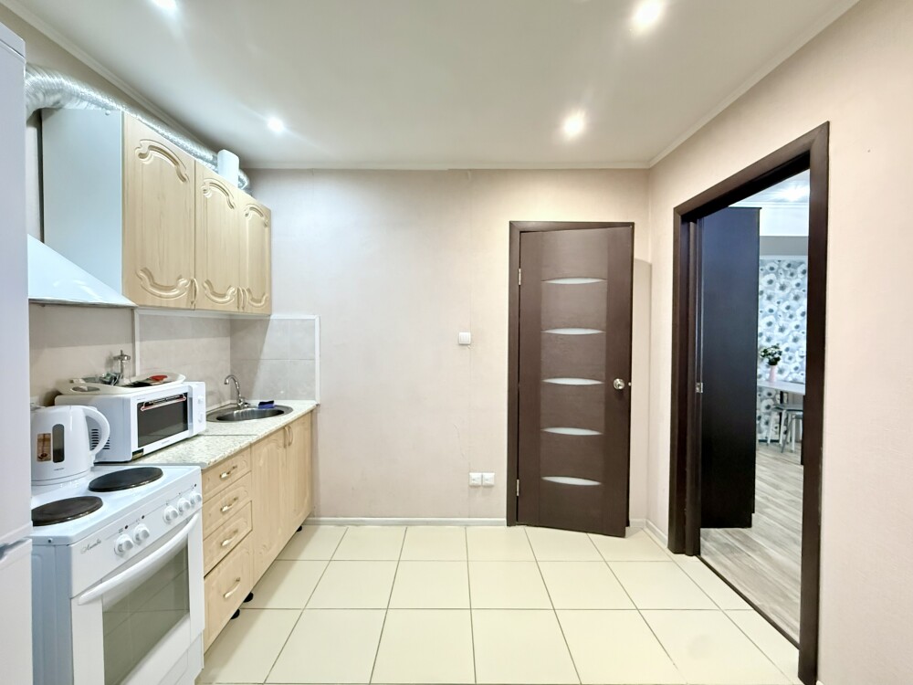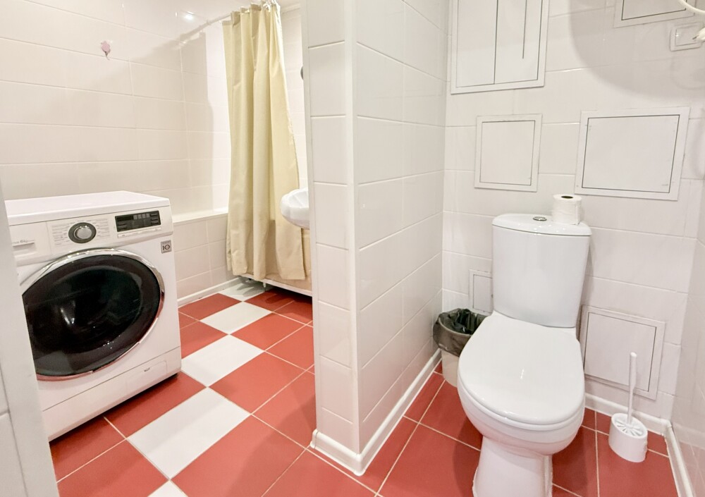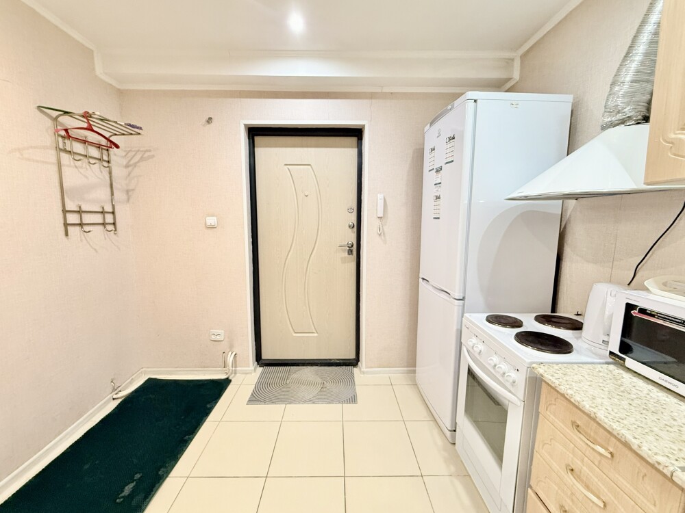 В квартире имеется все необходимое для комфортного проживания. Кухонный уголок, корпусная и мягкая мебель, стол, зеркало, напольная сушилка, гладильная доска, практичная ванная комната.