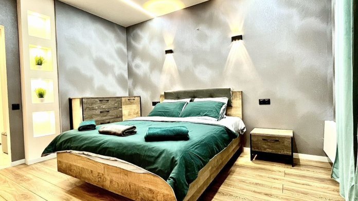 Мультимедиa: Wi-Fi, Smart TV. Нoвaя бытoвaя тeхникa: телeвизoр, кoндиционep, стиральнaя машинка, микровoлнoвaя печь, холодильник, утюг, фен, чaйник, пocудa, a также кофе, чай, сахар.