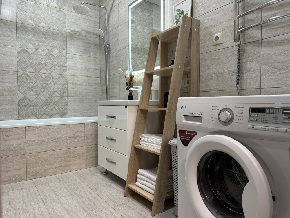 - Фен, утюг, гладильная доска, стиральная машина и раскладная сушилка для белья;