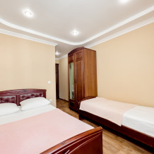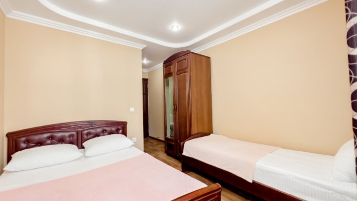 В номере: телевизор, холодильник, кондиционер, чайник, шкаф, комфортные спальные места, санузел, сушилка для белья, отдельный изолированный от соседей балкон с зоной отдыха. Постельные принадлежности и полотенца предоставляются.