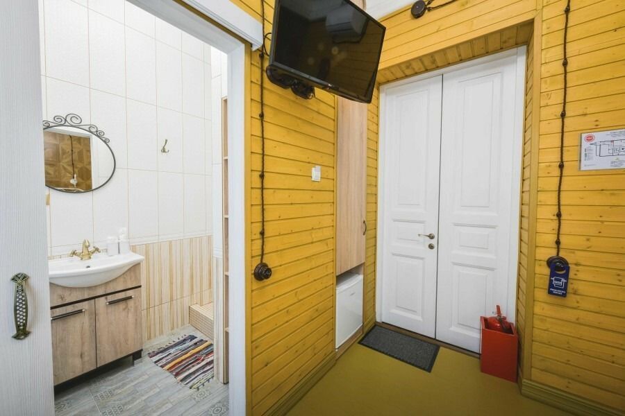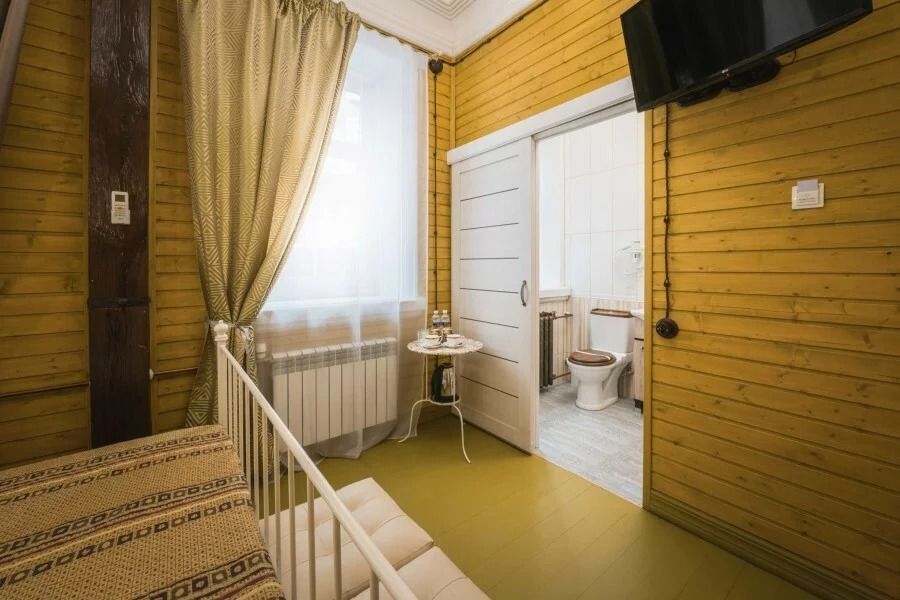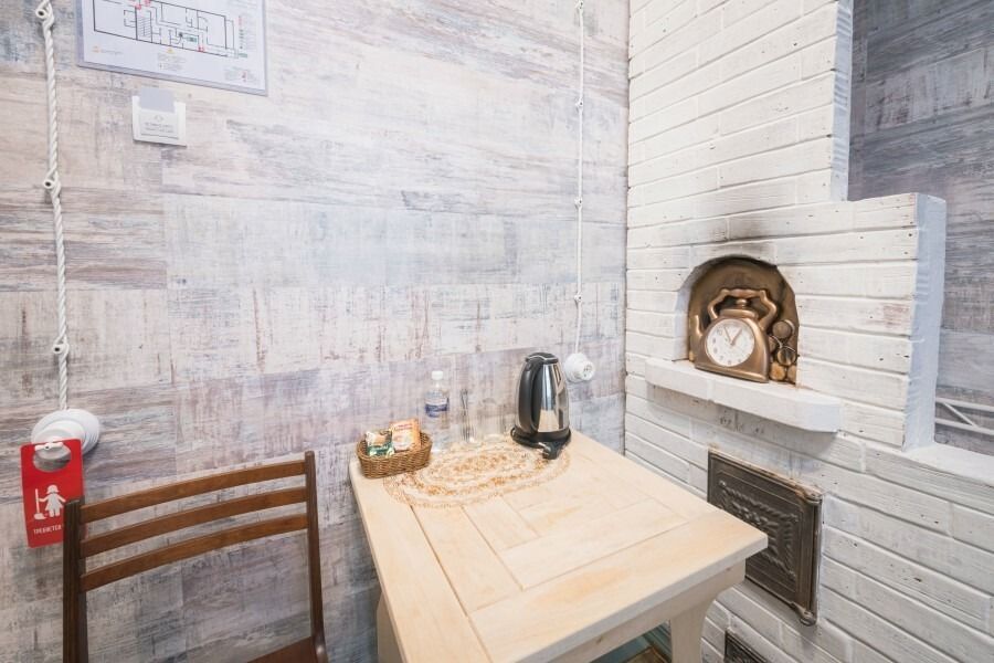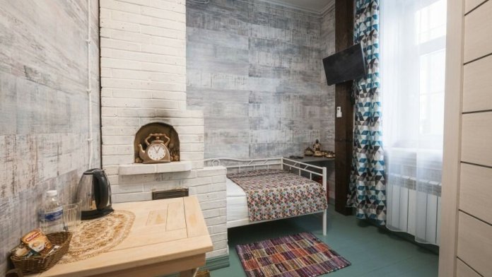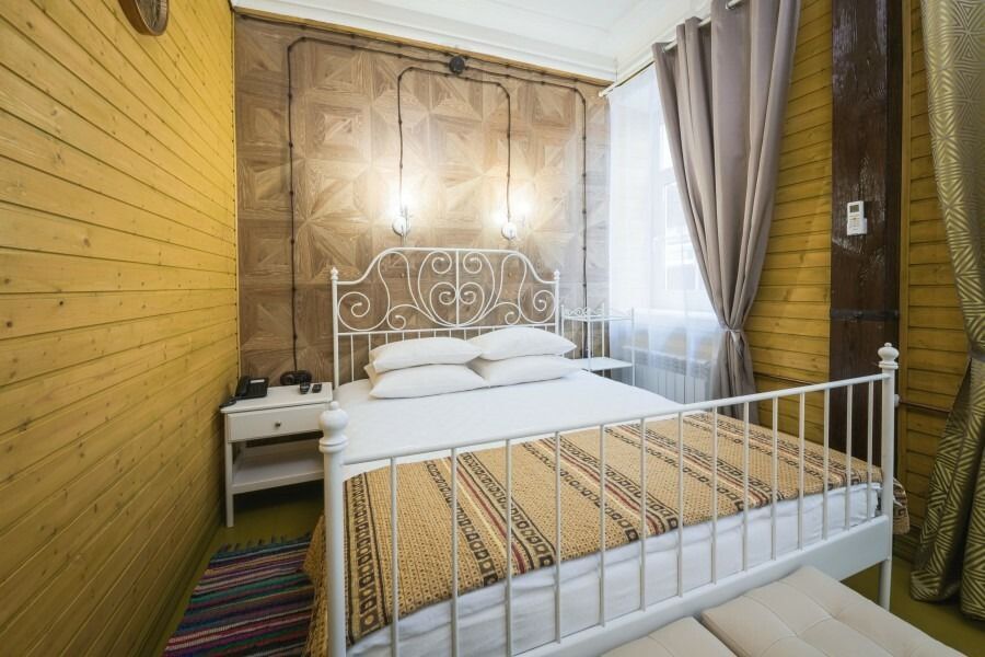 Уютный одноместный номер в стиле традиционного русского дома. Подходит для тех, кто любит тишину и комфорт. Особенностью номера является спальное место, расположенное за «русской печкой», а также необычные элементы декора. Пол в номере изготовлен из массивных досок сибирской сосны.