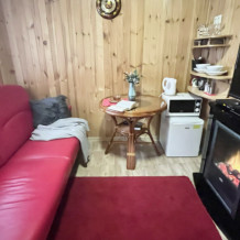 Шезлонги, батут, мангал, дрова, шампура, решетка, постельное белье, посуда, столовые приборы, махровые полотенца, одноразовые тапочки, принадлежности для душа предоставляются бесплатно. В комнате доступно: СВЧ-печь, электрический чайник, стол, стулья, мини-холодильник, телевизор, приставка Триколор ТВ, раскладной диван, электрический камин. Душ в комнате.