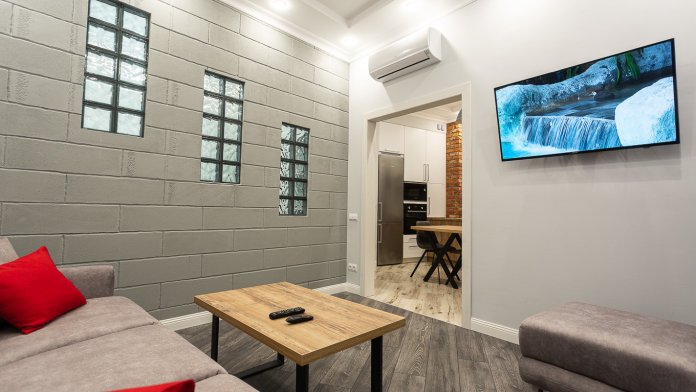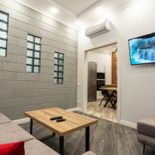 Апартаменты в стиле лофт, общей площадью 52 кв. м, расположены в новом доме в самом центре Калининграда, и в тоже время в парковой зоне. Огороженная, охраняемая территория с детской и спортивной площадками, небольшим фонтаном. Свободная парковка на территории. В шаговой доступности все достопримечательности города: Кафедральный собор, Рыбная деревня, Астрономический бастион, парки и т. д. В нескольких минутах ходьбы находятся торговые центры, магазины, кафе, рестораны, банки, аптеки, кинотеатры и многое другое.