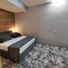 В распоряжении гостей — номер с двумя комнатами, оснащённый современной техникой и удобной мебелью. Есть возможность выбрать номер с двуспальной кроватью и диван-кроватью. В номере могут разместиться четверо гостей, поскольку диван позволяет удобно разместить ещё двух человек.