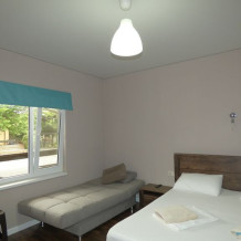 Возможно дополнительное спальное место для 4 гостя, оплачивается отдельно. Комфортный номер с двуспальной кроватью и диваном. В комнате санузел, ТВ, кондиционер, холодильник. На улице стол и стулья для отдыха.