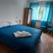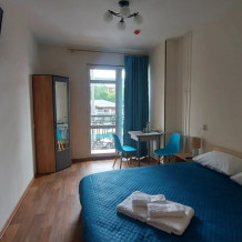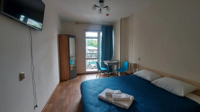 В номере: двуспальная кровать, ванная комната, гардероб с вешалками, универсальный стол, телевизор, Wi-Fi, стулья, светильники, тумбочки прикроватные, корзина для мусора.