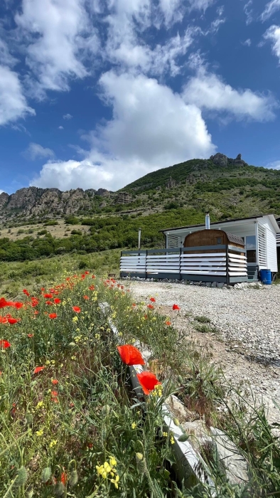 База отдыха «Cherrychillvillage» у подножья Демерджи. Ближайший пляж - 15 минут на машине, до Алушты - 20 минут на машине. В центре села магазины, рынок, аптека, остановка автобуса - 20 минут пешком.