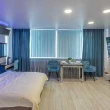 Просторная квартира-студия в люксовом жилом комплексе ЖК «Театральный». 24-этажный жилой комплекс класса «Комфорт плюс», с подземным 3-х уровневым паркингом и прогулочной зоной на эксплуатируемой кровлей. Из нее открывается захватывающий вид на Владивосток — бухту Золотой Рог, пролив Босфор Восточный, мосты, центр города, мыс Чуркин.