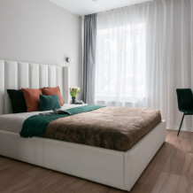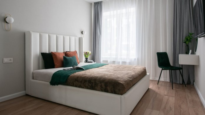 - Удобную двуспальную кровать с ортопедическим матрасом и раскладной диван для двух дополнительных мест.