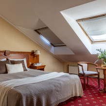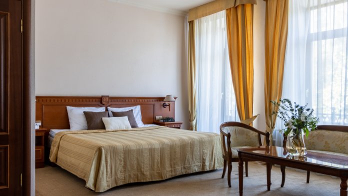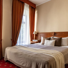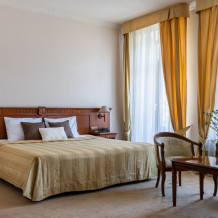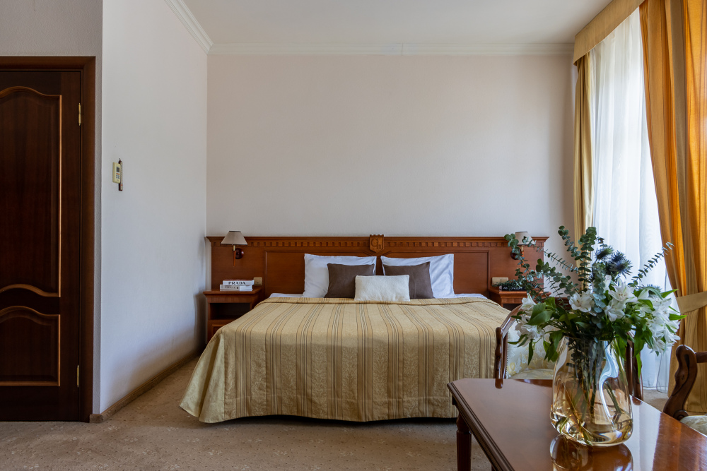 Приглашаем Вас в роскошный отель «Golden Hotel»! Он расположен в самом центре города Гатчина – одного из главных парадных пригородов Санкт-Петербурга - среди аллей, музеев и дворцов. Здание гостиницы, являющееся памятником архитектуры второй половины XIX века, полностью реконструировано в 2005 году. Архитектура отеля гармонично сочетает традиции классического стиля и современность, а из панорамных окон гостиницы открывается удивительный вид на Императорский Дворцово-Парковый Ансамбль. Широкий выбор категорий номеров в классическом исполнении дополняют исторический образ отеля.