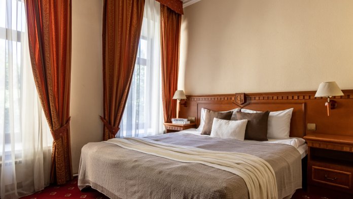 В номере: двуспальная кровать или 2 односпальные кровати.