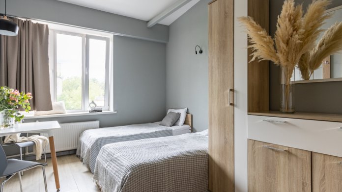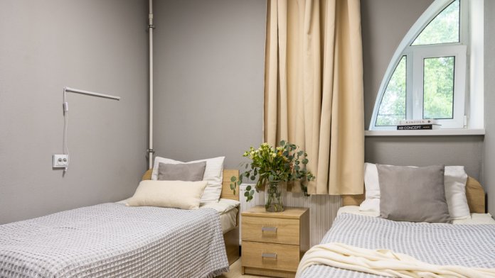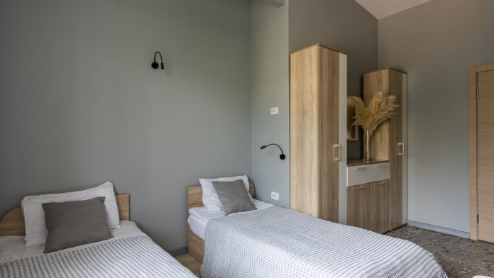 Вариант размещения на выбор: Двуспальная кровать или 2 односпальные кровати