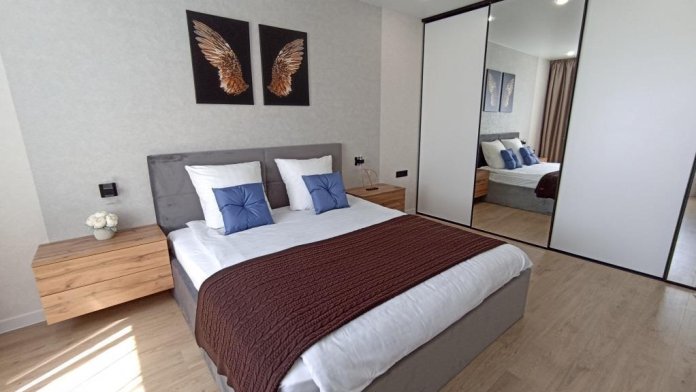 - новая кровать с качественным матрасом, элитное постельное белье;
