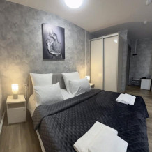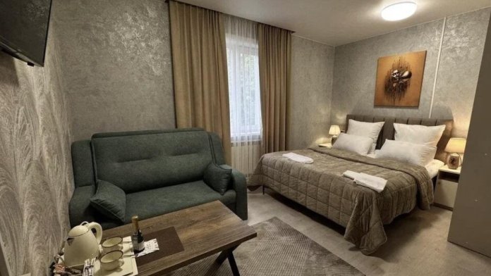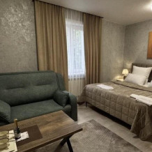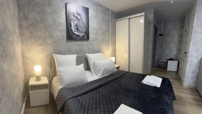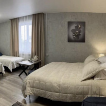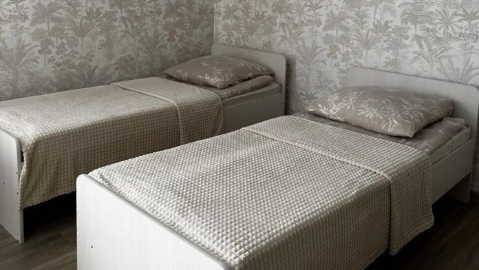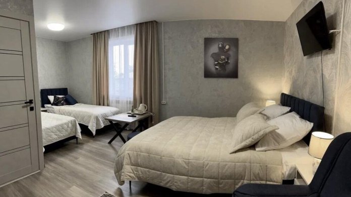 Для размещения гостям предлагают номера категорий Семейный, Люкс и общие номера для мужчин и женщин на 3 и 4 человек. Номера стильные, выполненные в серых тонах. В каждом из них есть: кровать, холодильник, центральное отопление, телевизор с кабельным телевидением, холодильник, просторный шкаф для хранения вещей. В ванной установлена душевая кабина.