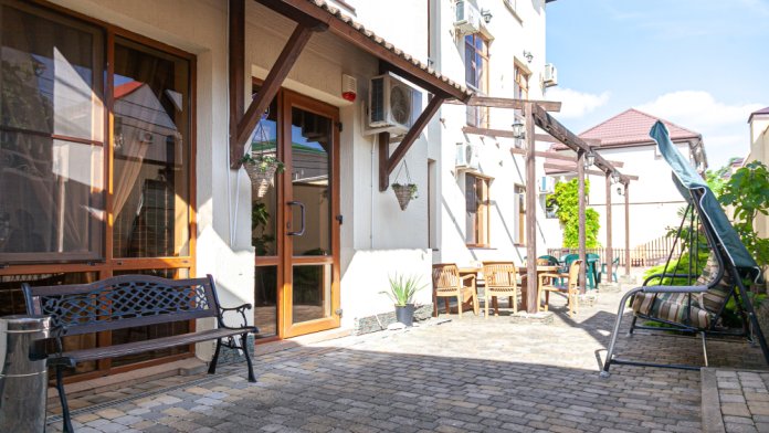 Приготовить еду и поесть можно в обустроенной общей кухне, также предоставляются принадлежности для барбекю. Имеется не большой двор с качелей, лавочками и столами для приятного отдыха на свежем воздухе.