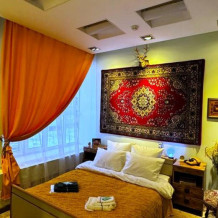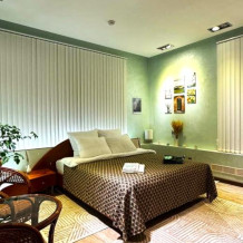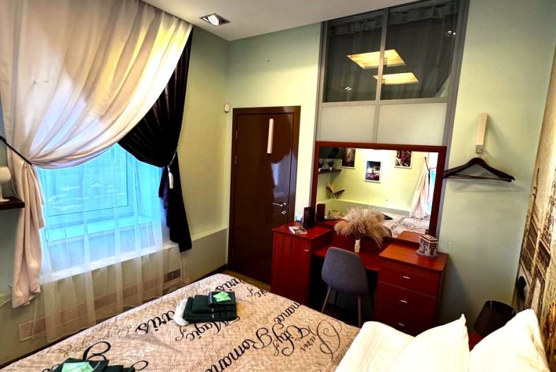Номер (уютный, с высокими потолками) в стиле СССР с советским спальным гарнитуром и атрибутикой, советской кроватью 140 на 200, советским телевизором, столиком и креслами в советском стиле. Общий санузел.