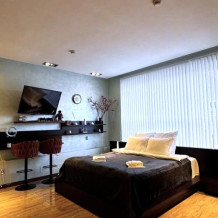 Номер «Оксфорд» - мебель серии оксфорд с итальянским спальным гарнитуром с подсветкой, кроватью 180 на 200, и две кровати 90 на 200, большим телевизором 47 дюйма, мини барной стойкой и 2 барными стульями, личным холодильником.