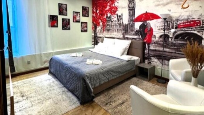 Комната во Французском стиле, с тематикой Парижа , кроватью 160 на 200, большим телевизором 42 дюйма.