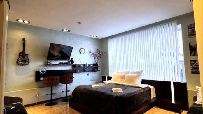 Комната со стилистикой Лондона, с большой кроватью 180 на 200, с матрасом ортопедическим принимающим форму вашего тела , большим телевизором 41 дюйма, столиком и креслами из кожи.
