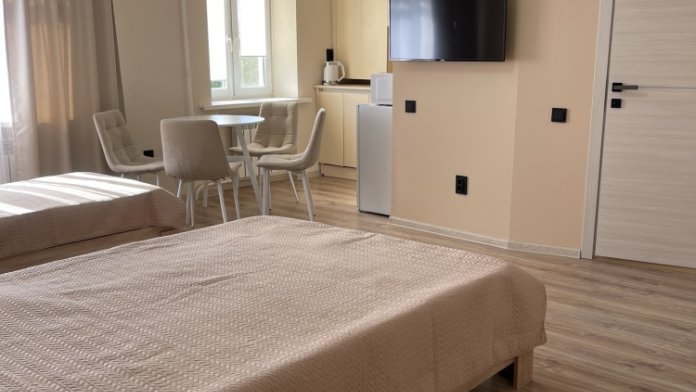 Квартира тёплая, с хорошим ремонтом. Есть все необходимое для проживания: кровать, диван, телевизор, кухонный гарнитур со всей необходимой техникой и посудой. Предоставляются туалетно-косметические принадлежности. Есть балкон. Работает Wi-Fi.