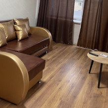 В квартире есть все необходимое для проживания: две односпальные кровати, диван, телевизор, кухонный гарнитур со всей необходимой техникой и посудой, стиральная машина. Предоставляются туалетно-косметические принадлежности. Работает Wi-Fi.