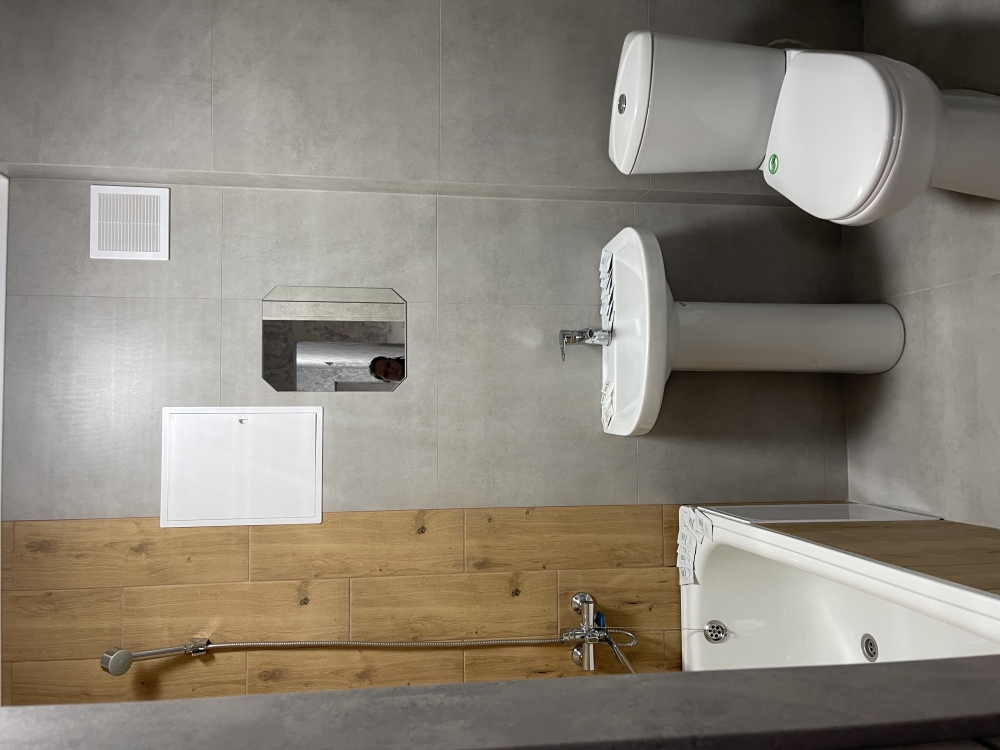 В квартире есть все необходимое для проживания: кровать, диван, телевизор, кухонный гарнитур со всей необходимой техникой и посудой. Предоставляются туалетно-косметические принадлежности. Работает Wi-Fi.