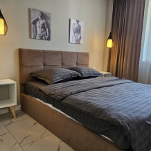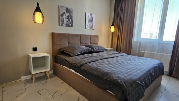 Кухня оборудованная под нужды современного человека, стеклокерамическая плита, вытяжка, микроволновая печь, холодильник. Smart телевизор, wi-fi, кондиционер, шторы блэкаут, стиральная машина. Средства гигиены, полотенца, фен, тапочки - всё предоставляем.